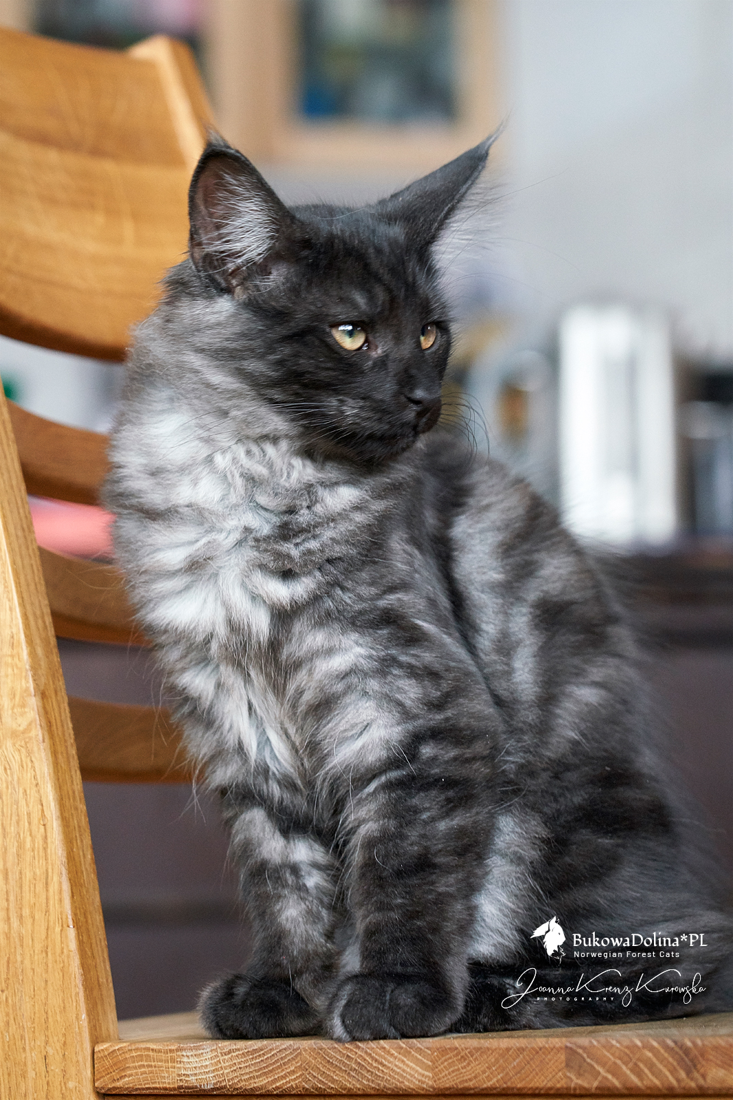 • Rasa i kolor: NFO ns, Kocur Norweski Leśny (czarny dymny)