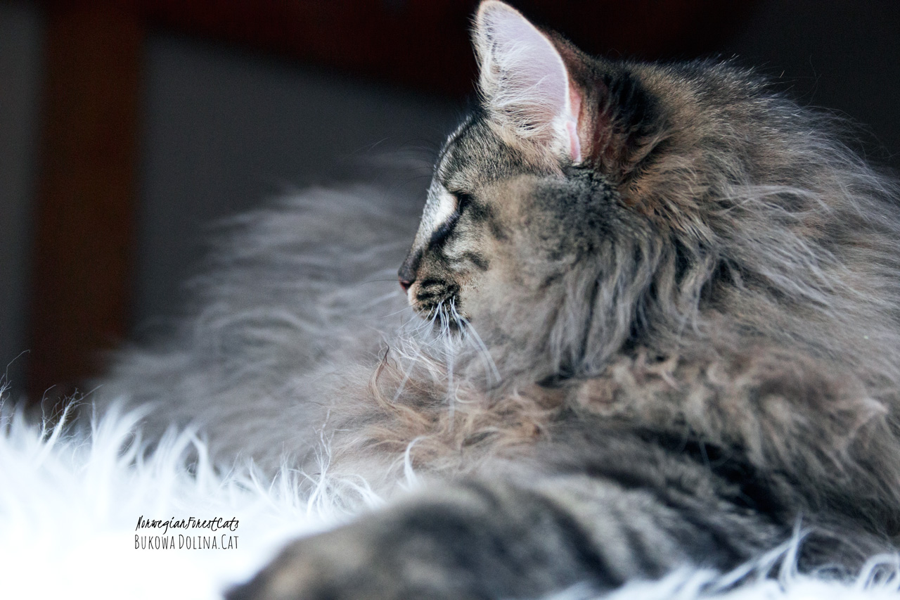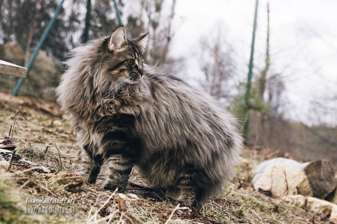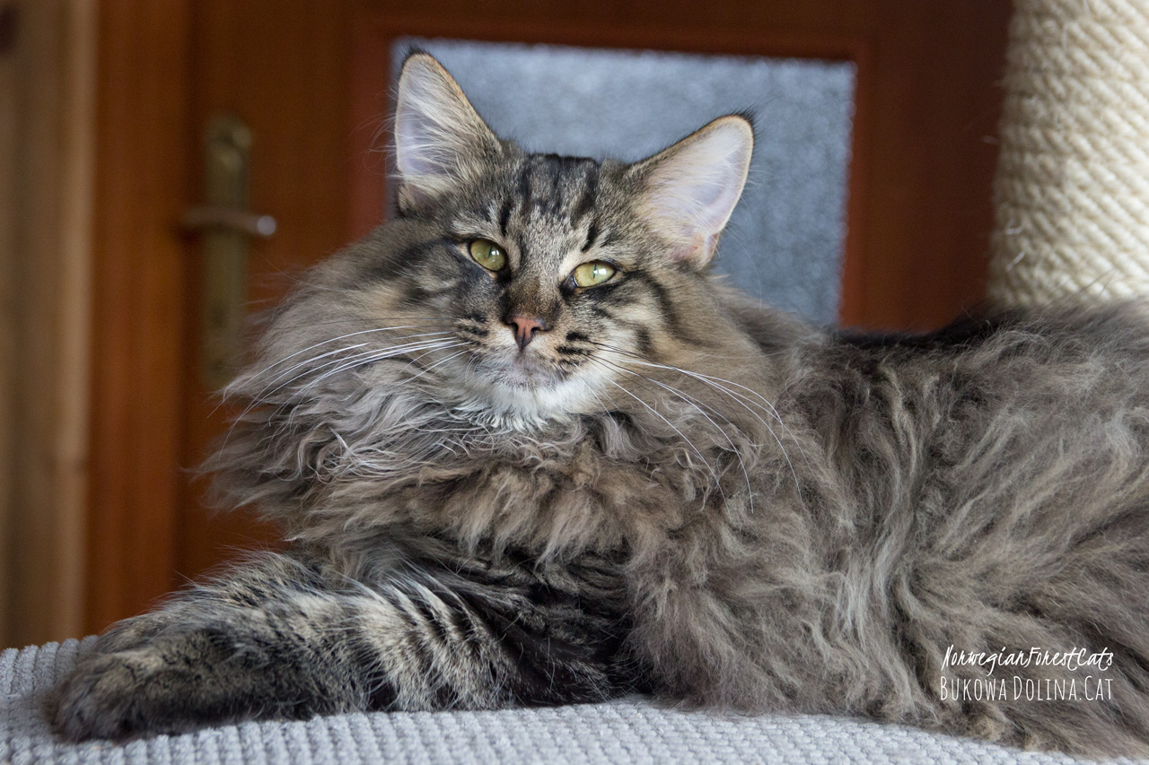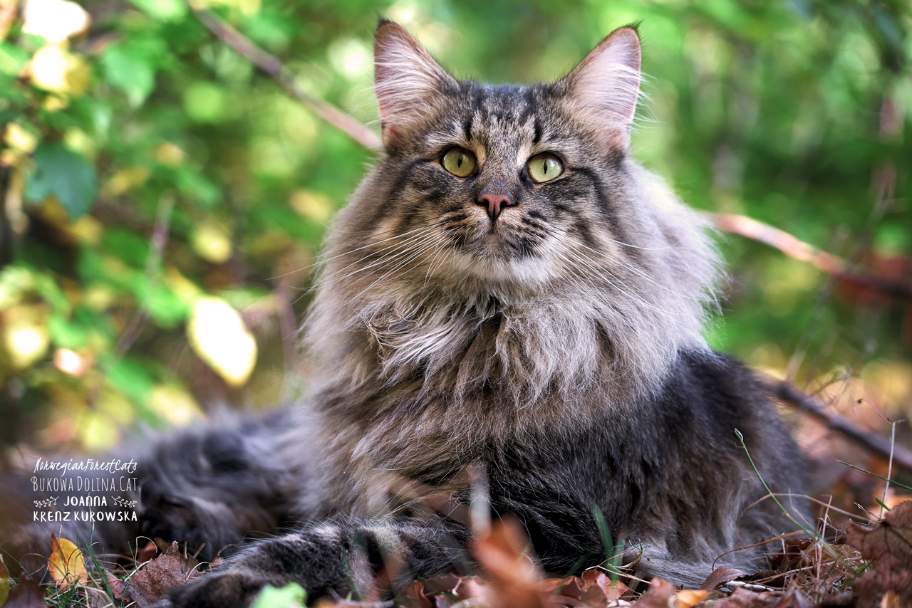 • Rasa i kolor: NFO n 24, Kocur Norweski Leśny (czarny cętkowany)