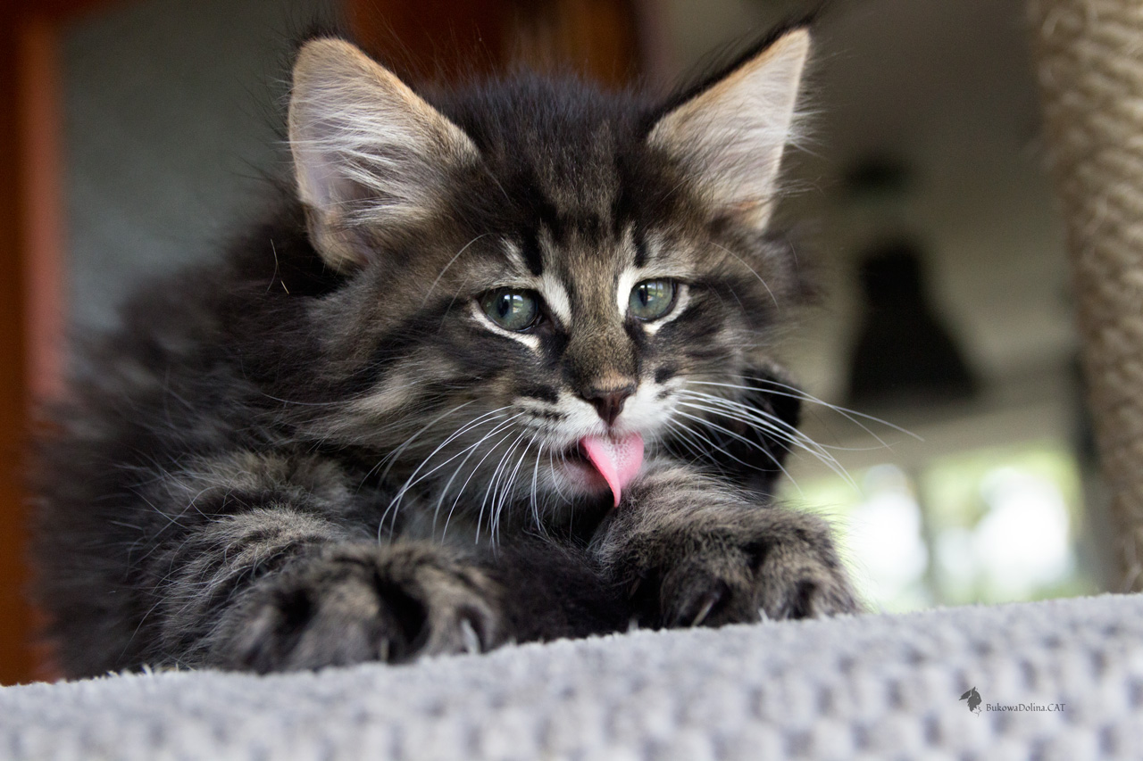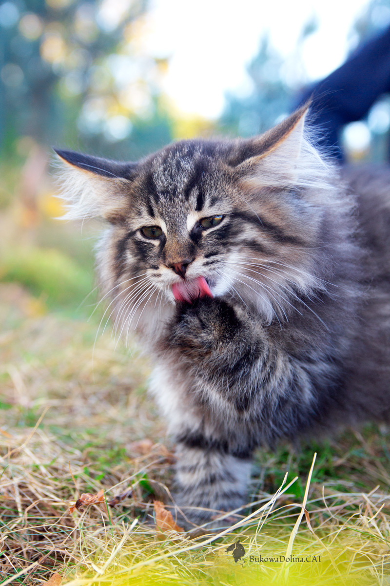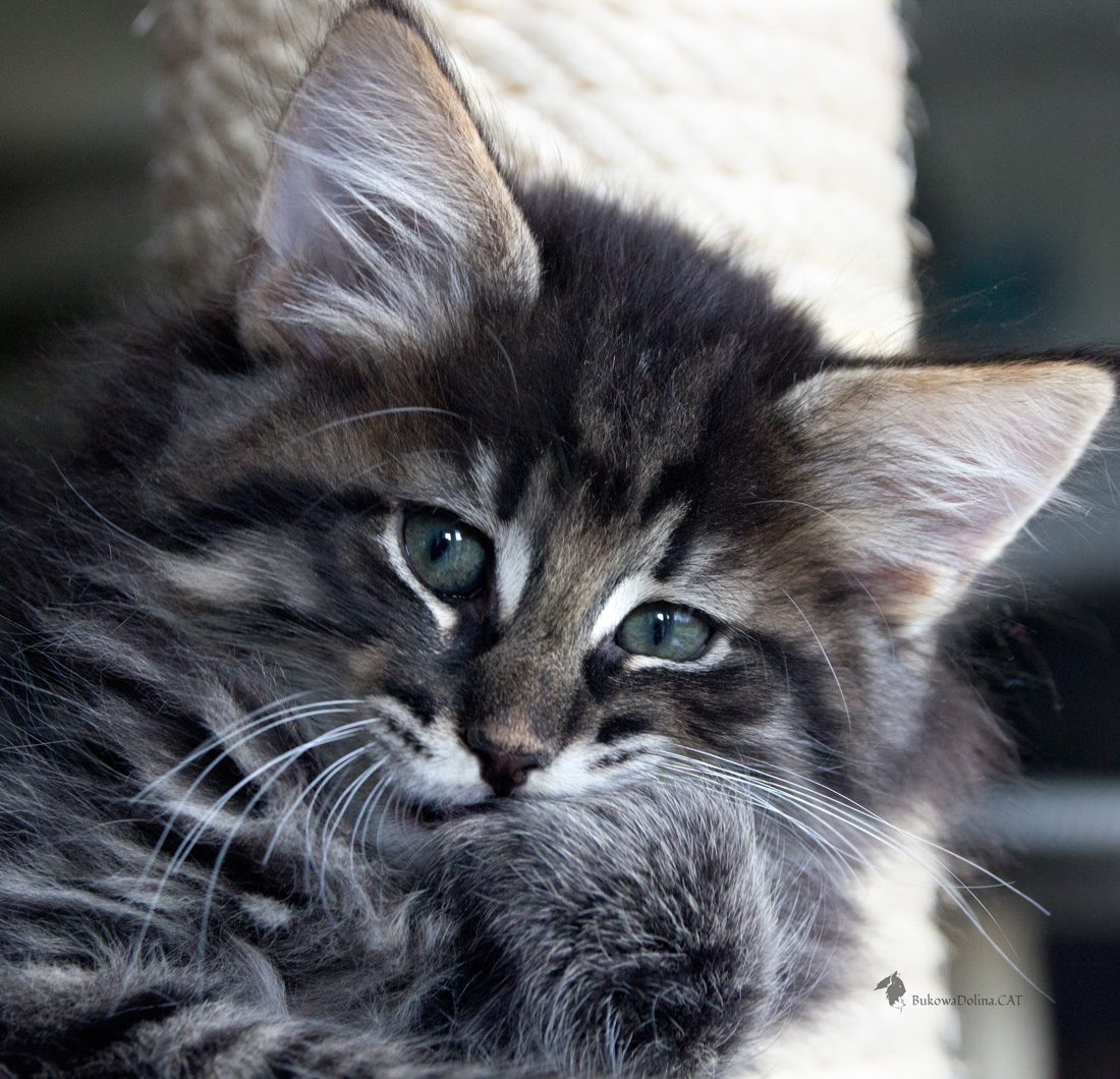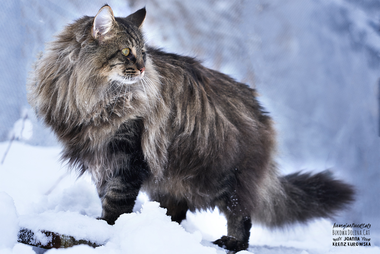 • Rasa i kolor: NFO n 24, Kocur Norweski Leśny (czarny cętkowany)