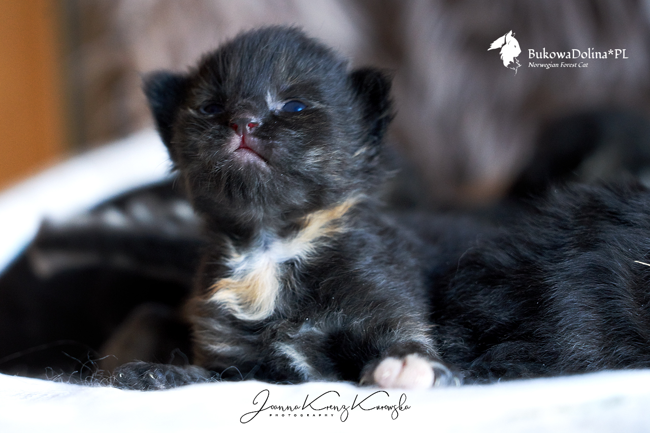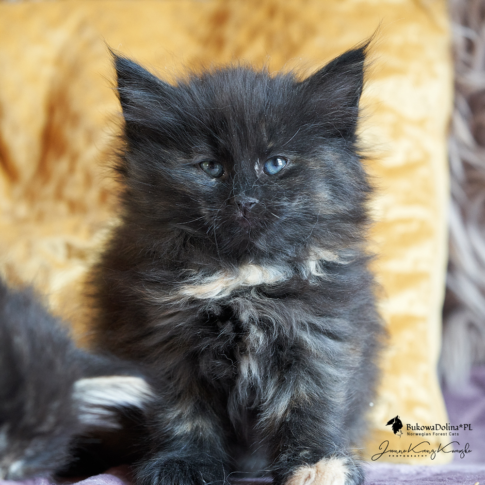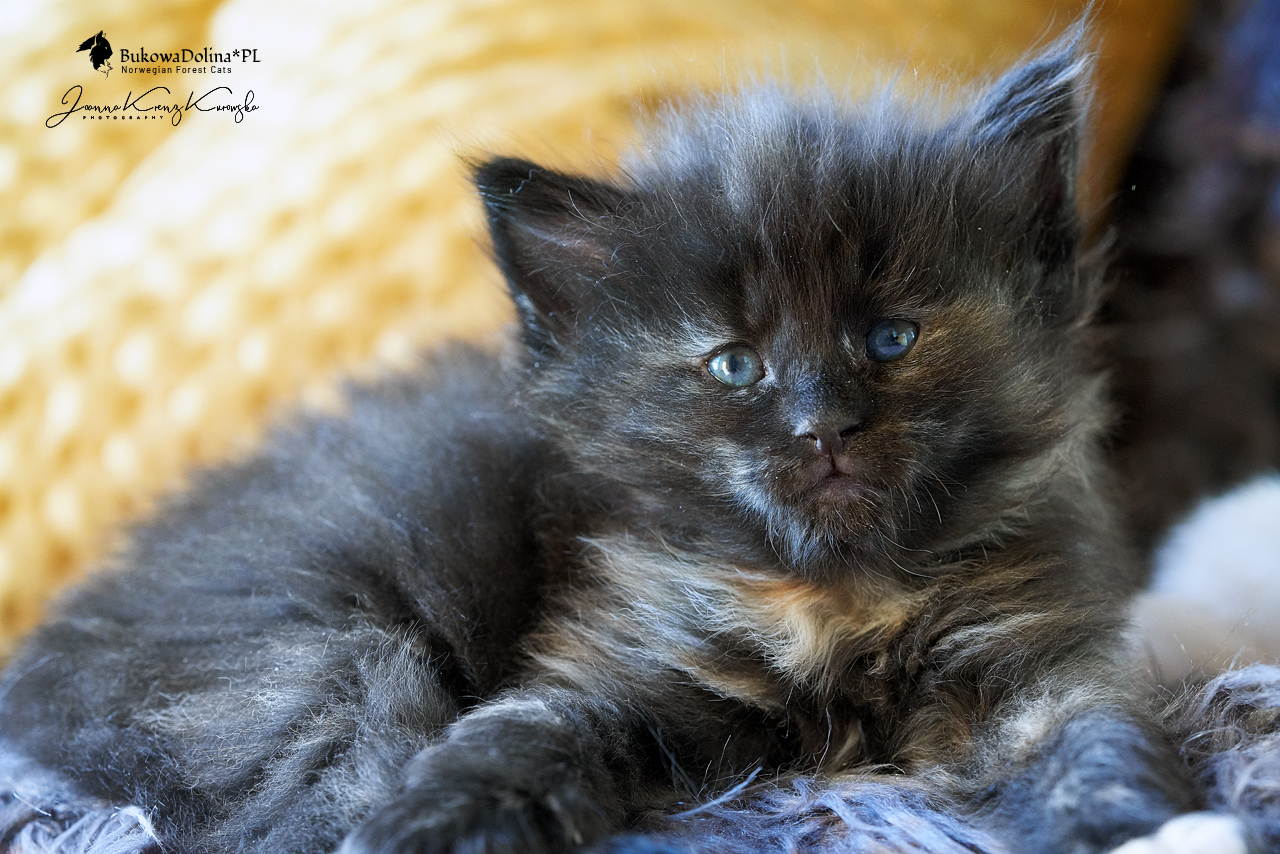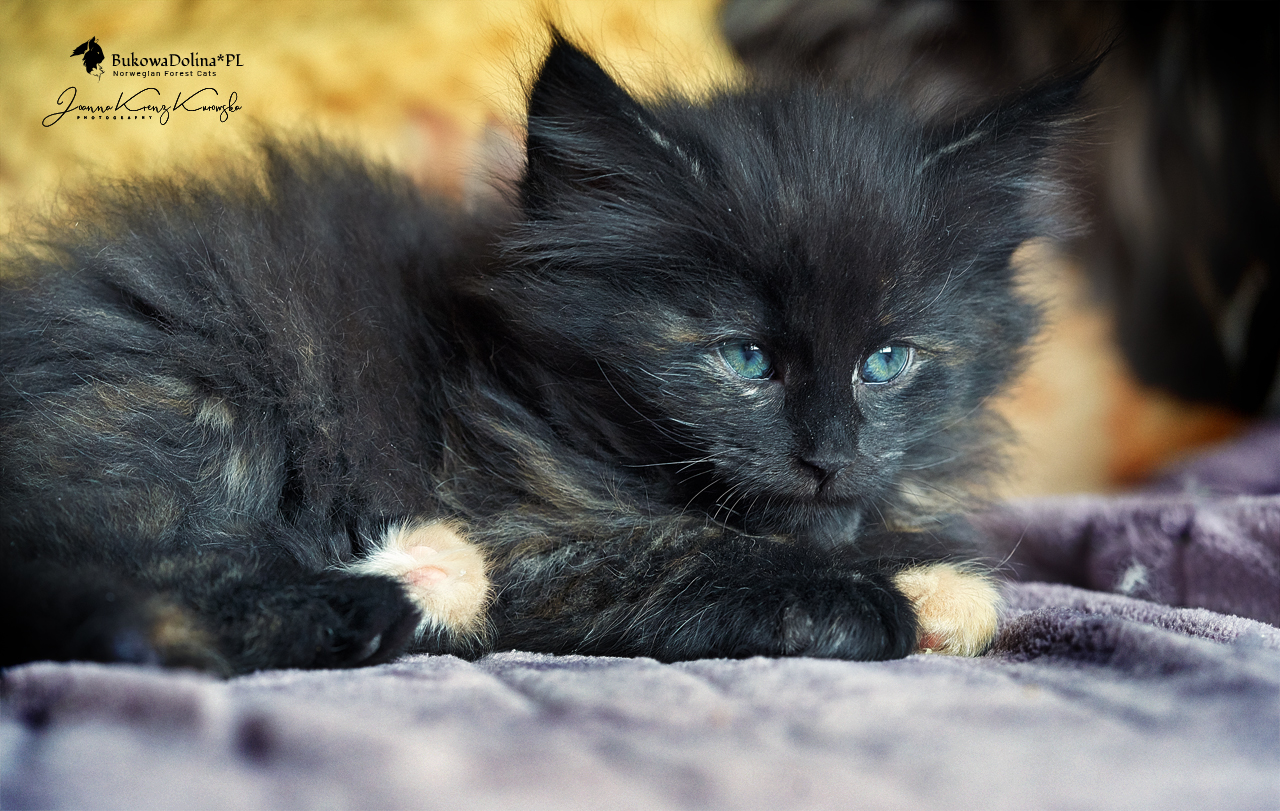 • Rasa i kolor: NFO f, Kotka Norweska Leśna, czarna szylkretka