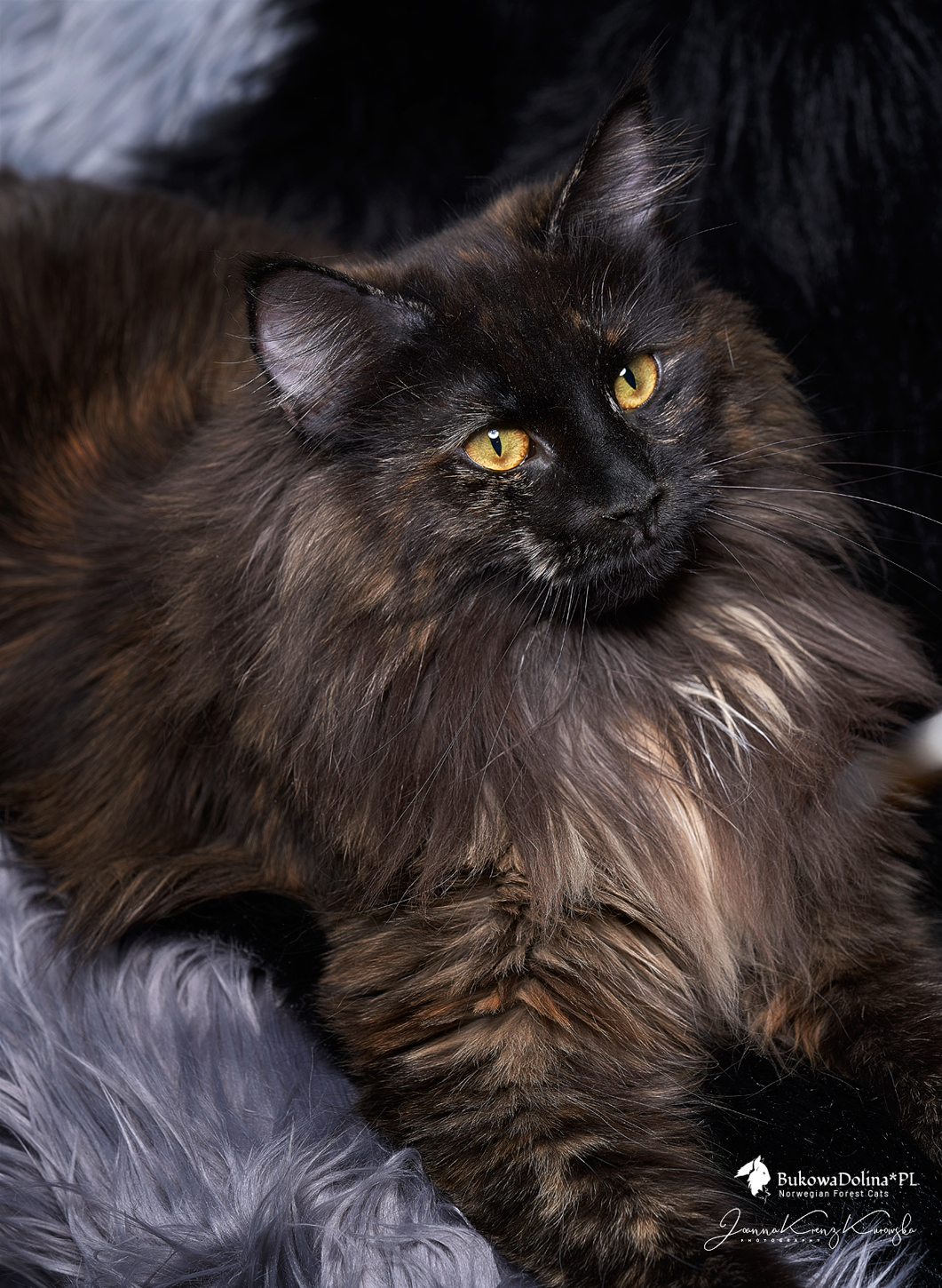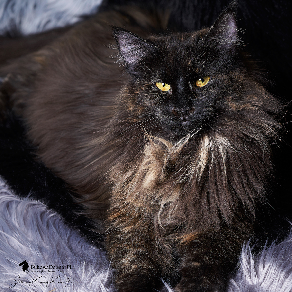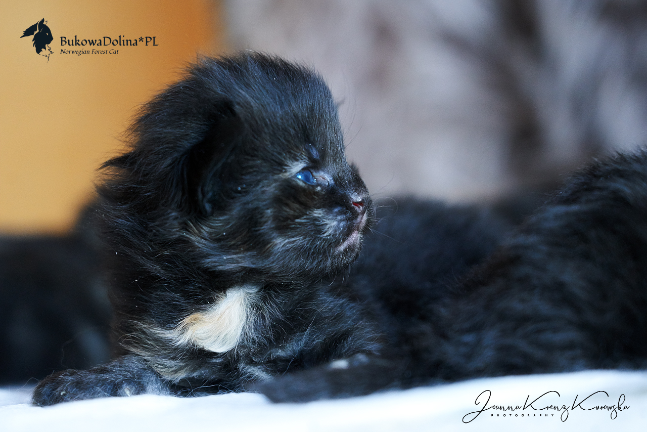 • Rasa i kolor: NFO f, Kotka Norweska Leśna, czarna szylkretka