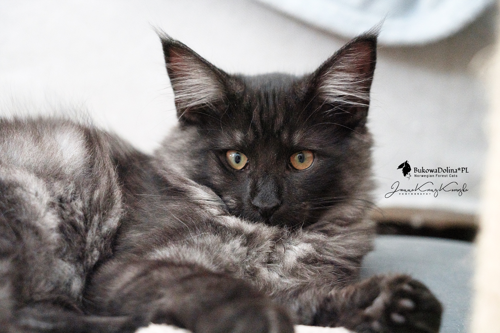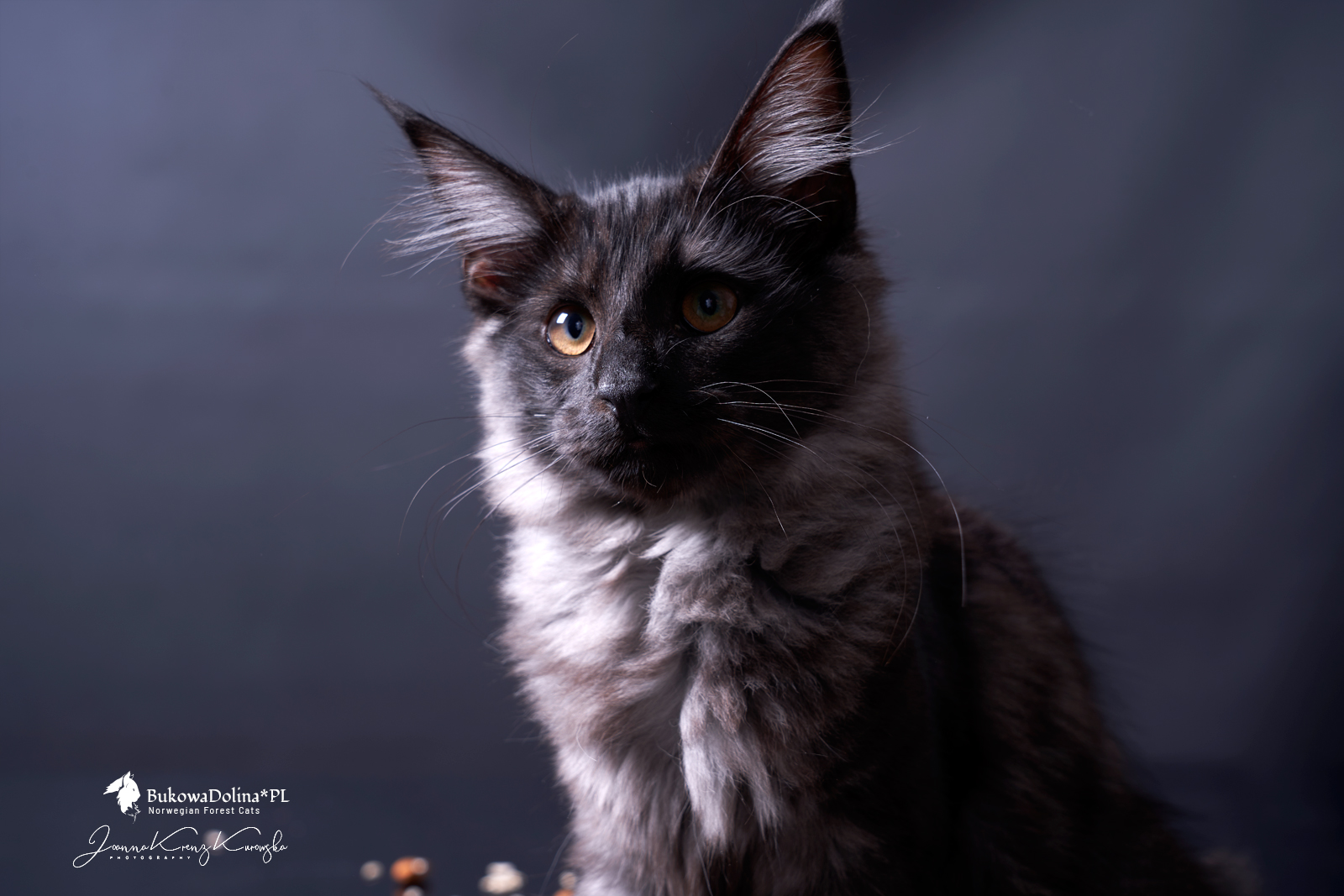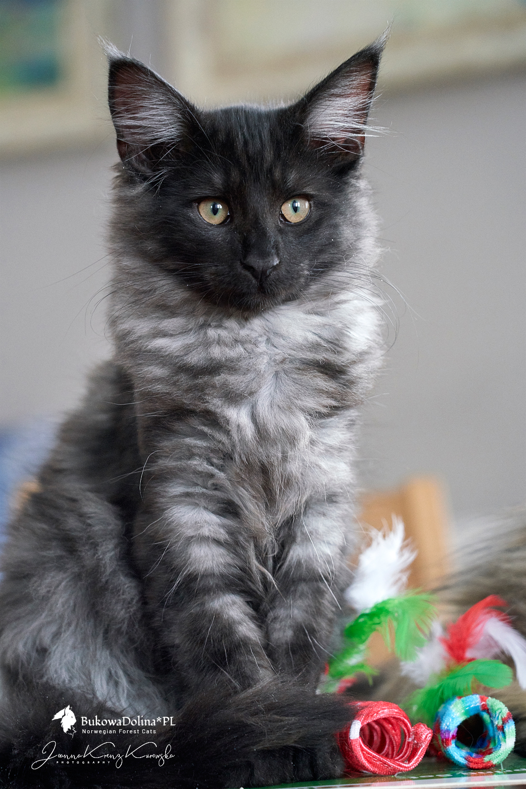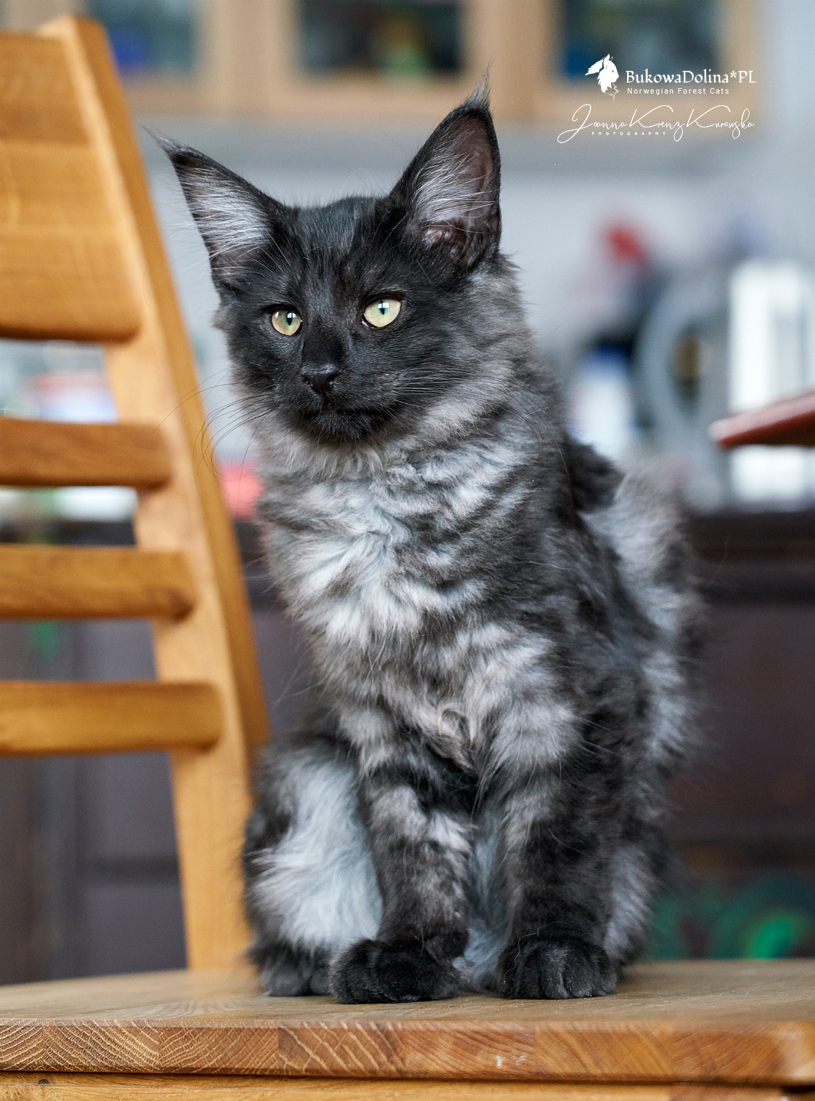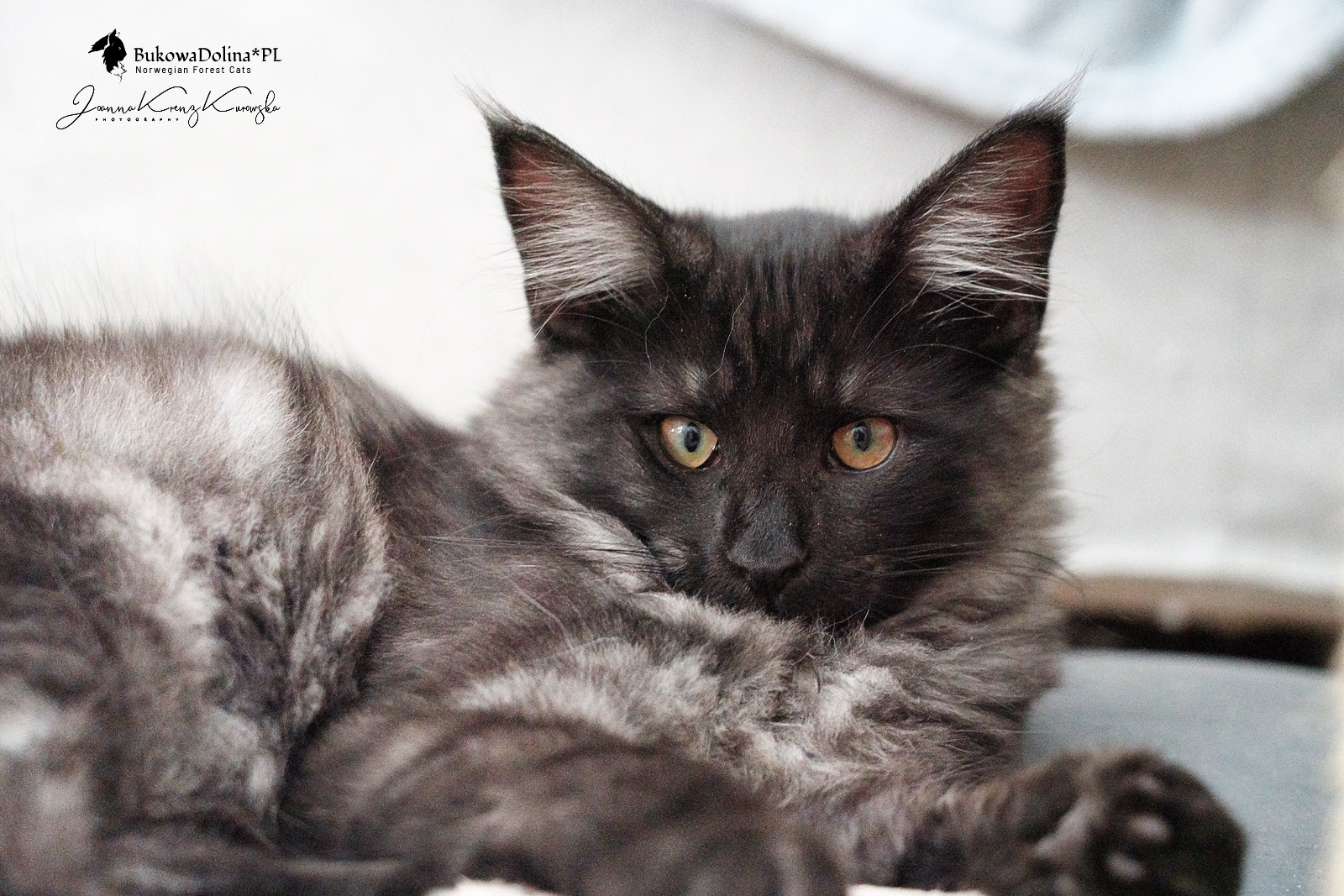 • Rasa i kolor: NFO ns, Kocur Norweski Leśny (czarny dymny)