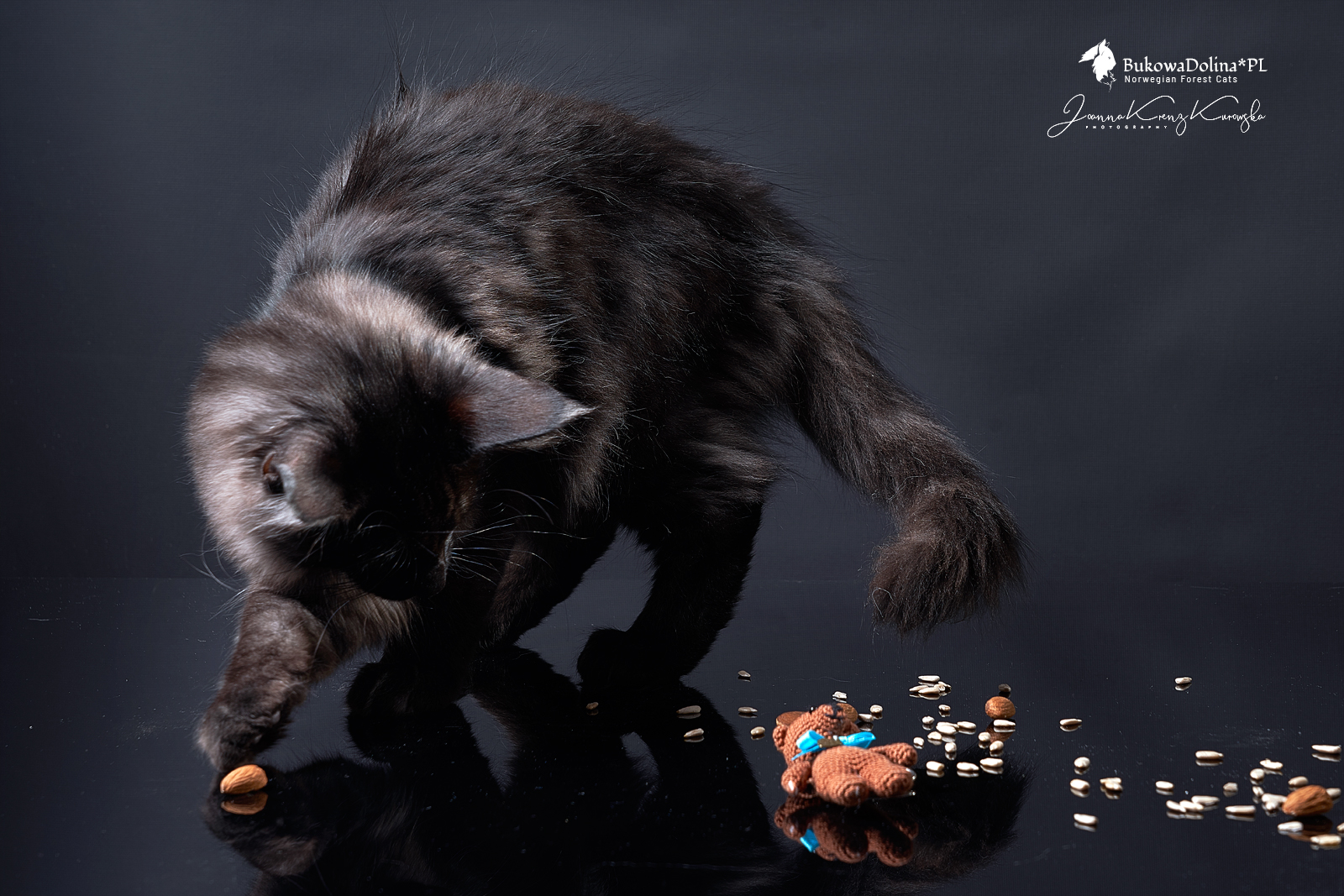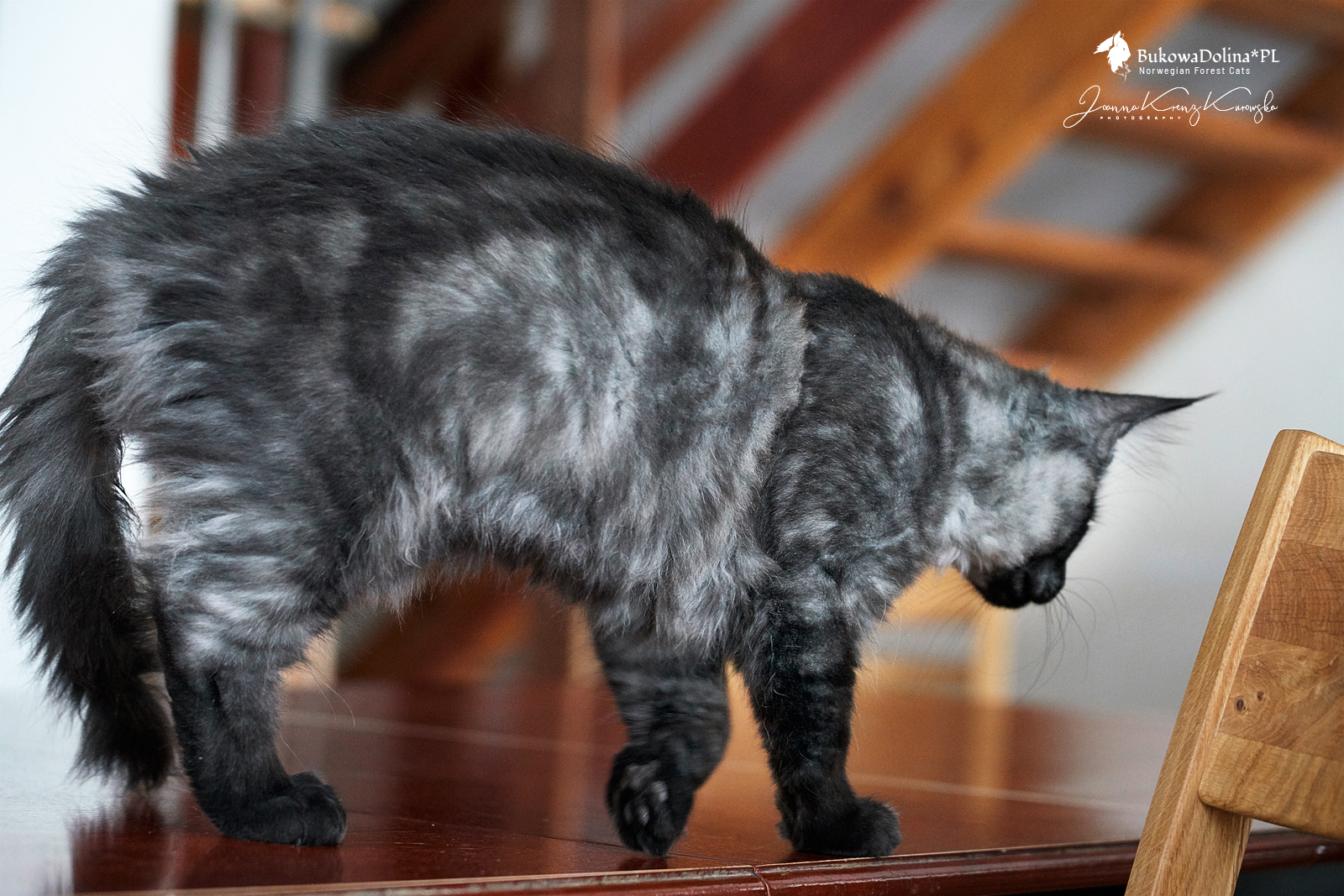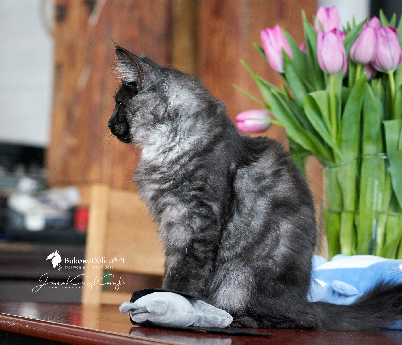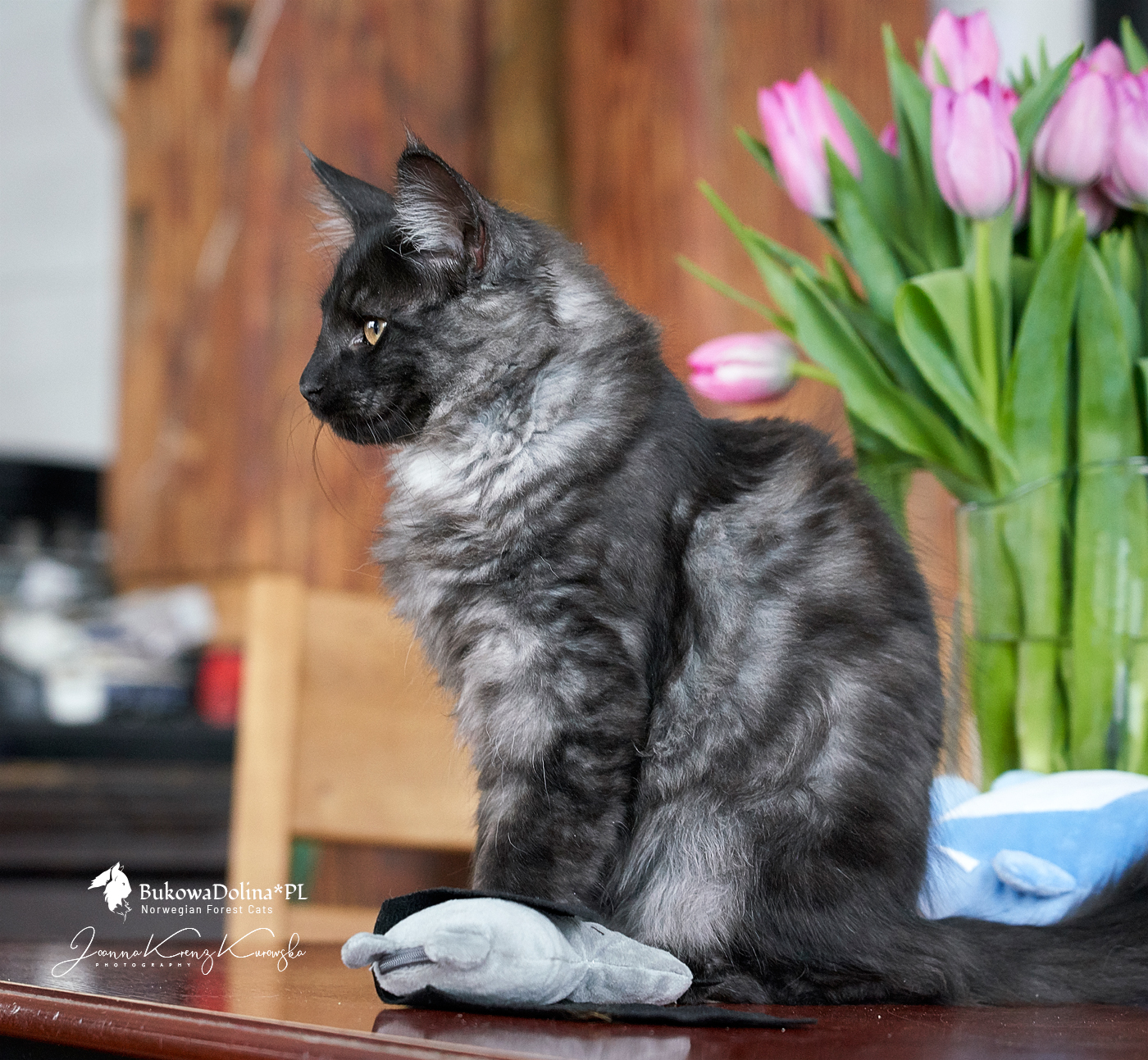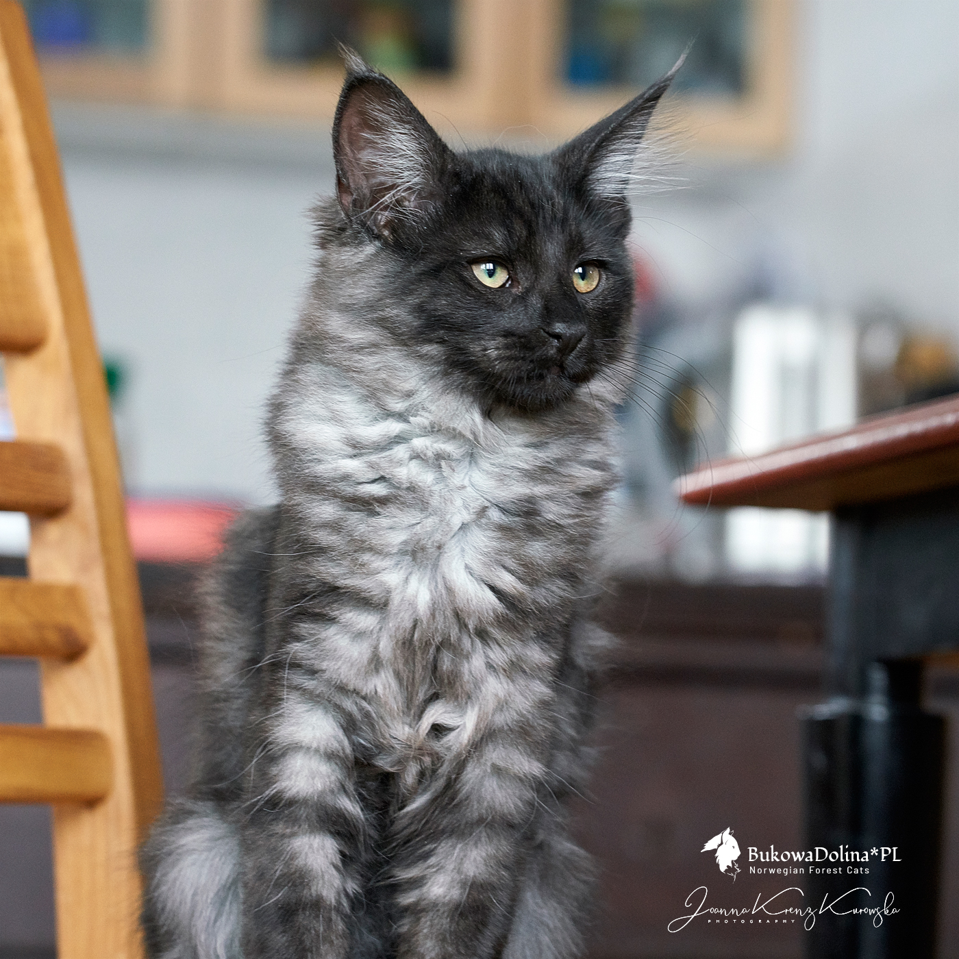 • Rasa i kolor: NFO ns, Kocur Norweski Leśny (czarny dymny)